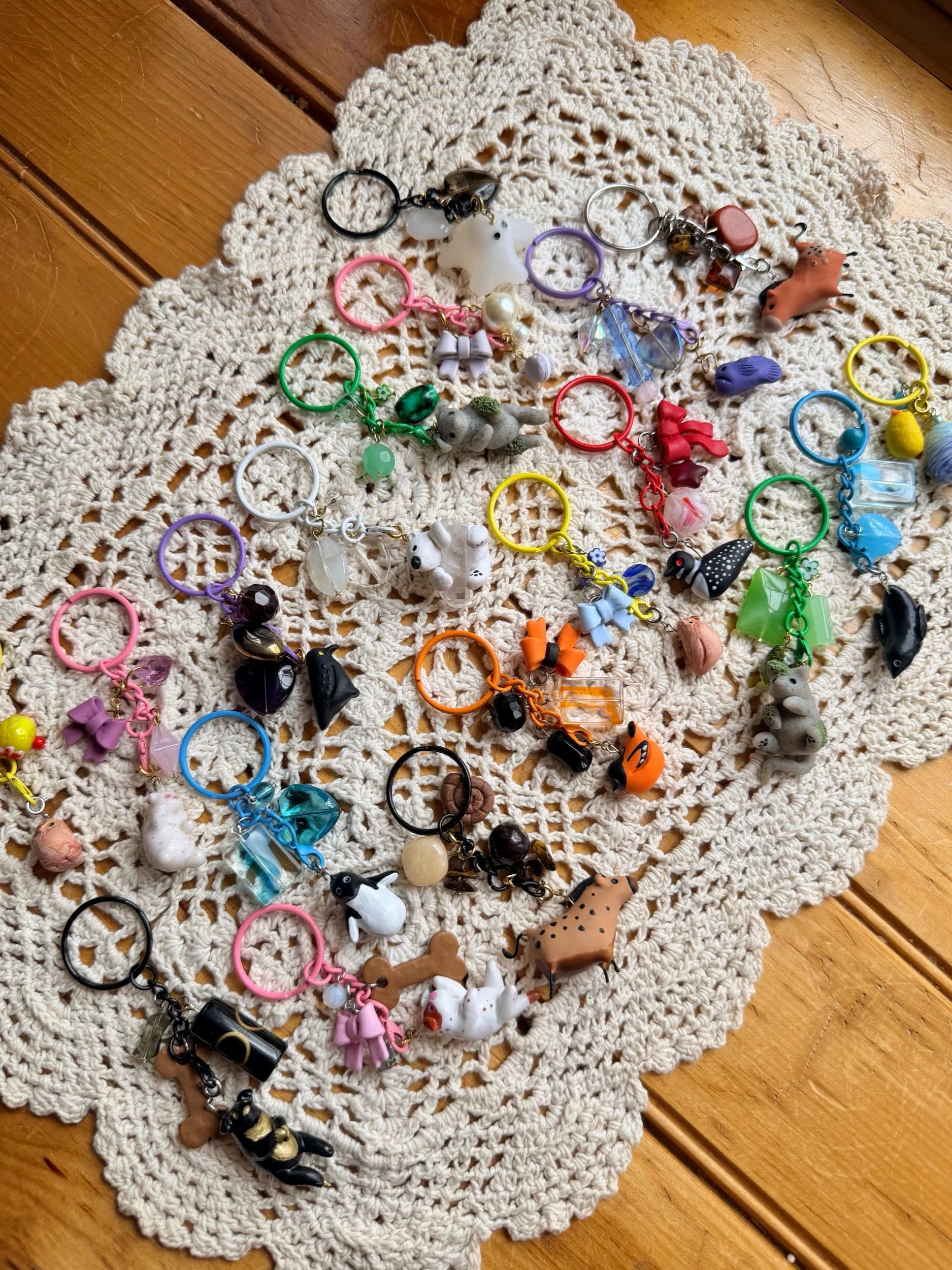 Adorn your favorite bag with some fun polymer clay charms! Each bag charm includes one or two hand sculpted, polymer clay charms, as well as some fun bead accents. Not recommended to hang on keys.