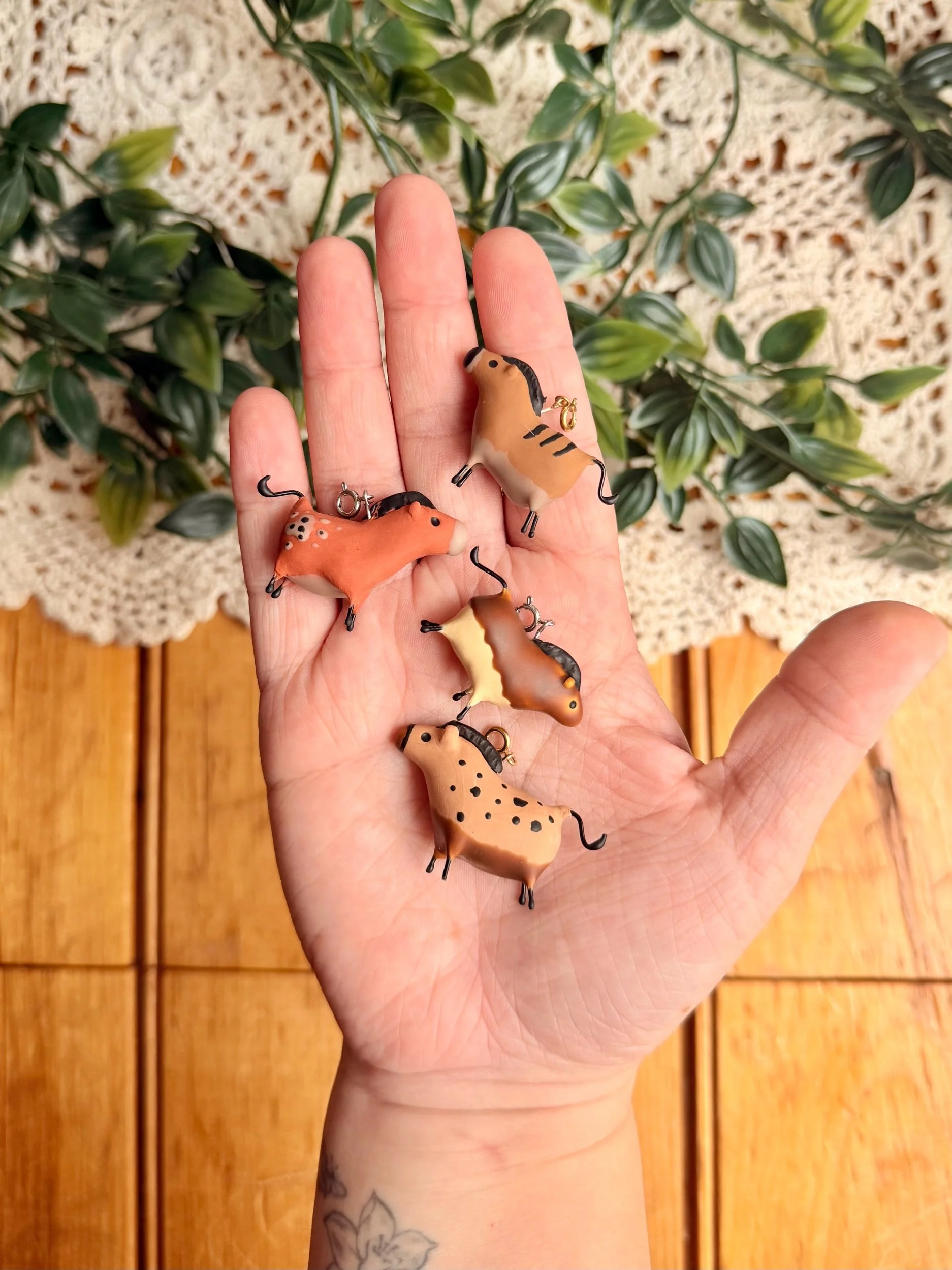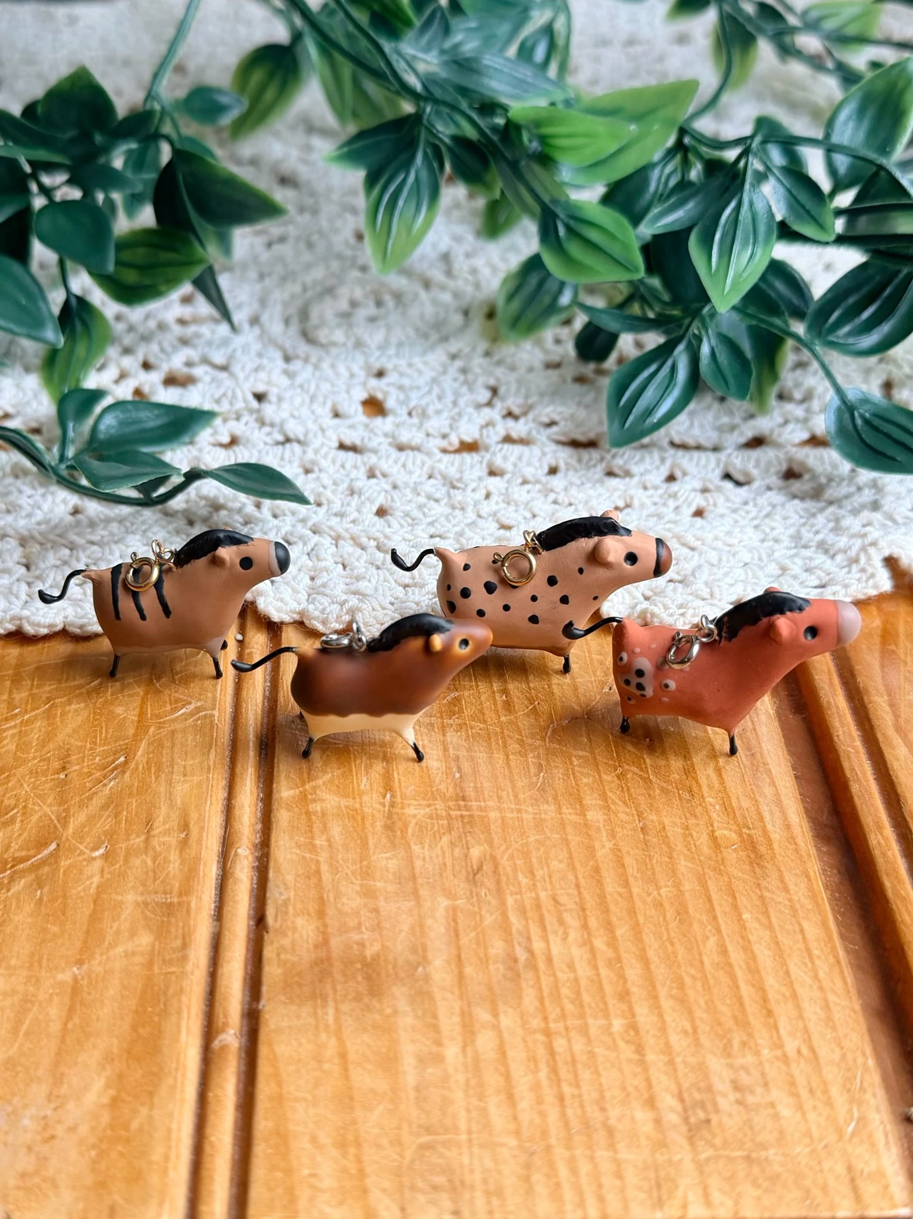 Inspired by Neolithic cave paintings, these chubby little guys are ready to gallop along with you on a charm necklace! Each horse is hand sculpted out of polymer clay and painted with liquid polymer clay. Charms include a spring ring for easy attachment to necklaces and other chain. See below for additional charm necklace add-on.